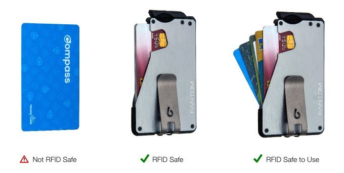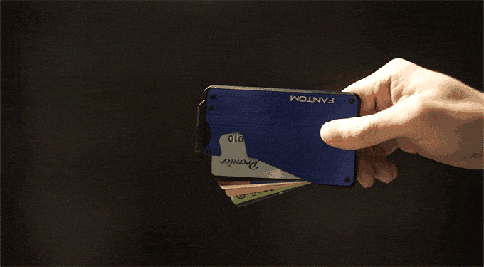 RFID는 무선인식이라고도 하며, 반도체 칩이 내장된 태그(Tag), 라벨(Label), 신용 카드(Credit Card) 등의 저장된 데이터를 무선주파수를 이용하여 비접촉으로 읽어내는 인식시스템으로 RFID/NFC Blocking 특허 기술을 사용하여 팬텀월렛 안에 있는 모든 신용카드는 카드 내장 정보 유출 및 도용으로부터 안전합니다. (알루미늄만 적용)